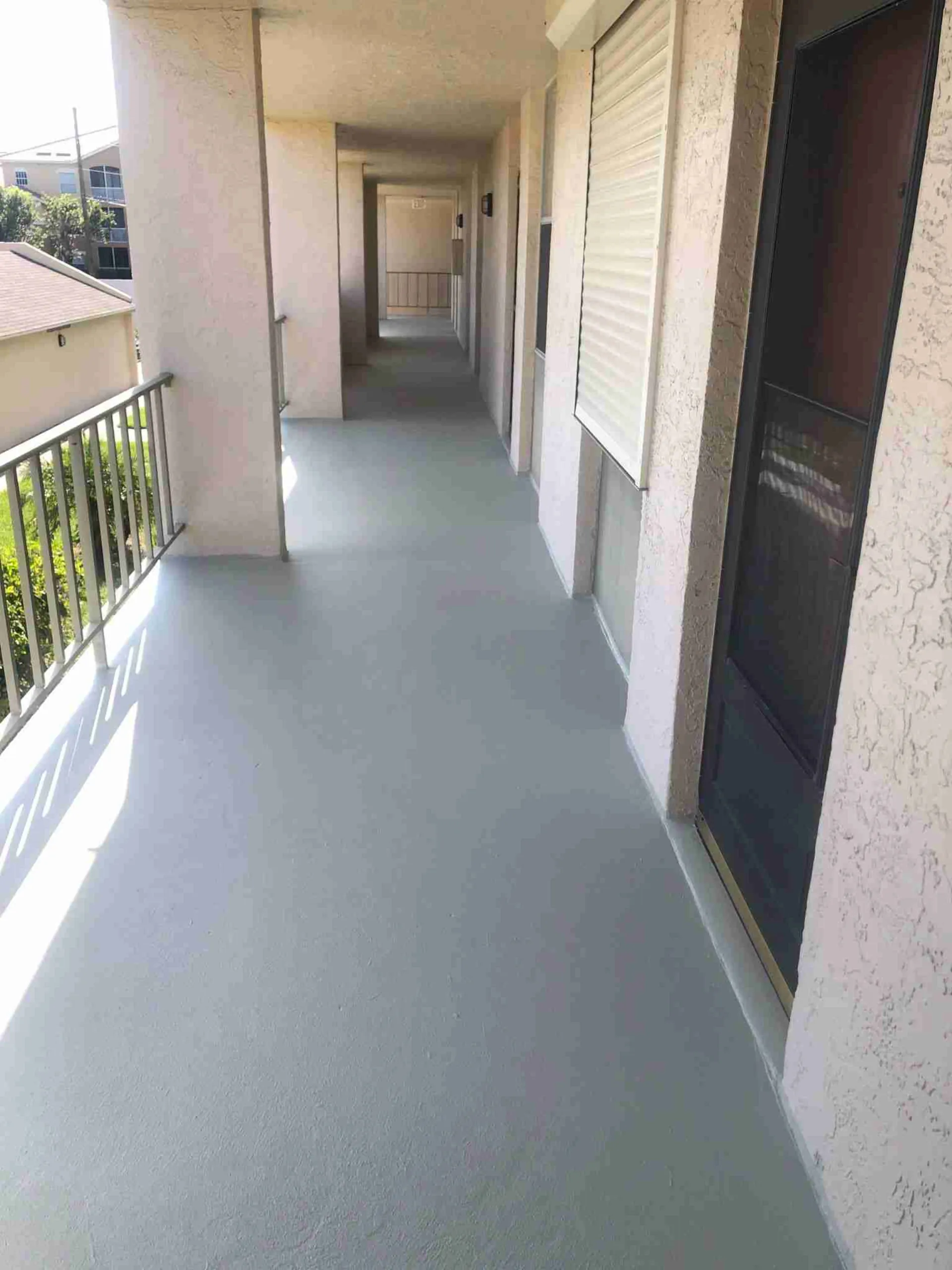 Spray texture coating for slip resistance on outdoor concrete surfaces. Combines safety with aesthetics for pool decks, patios, and walkways.